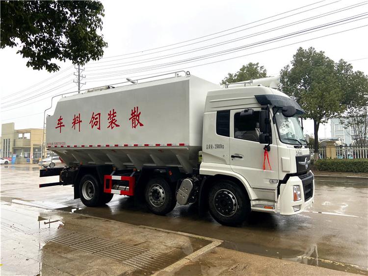 風多利卡12方散裝飼料運輸車整車3條電動絞龍卸料,罐體內分為三個倉,可獨立控制各分倉卸料順序和速度,有效容積12方,可裝6-8噸,標配3倉,電動絞龍卸料,卸料管傾斜70度, 垂直卸料高度8.5米,整車卸料完用時20分