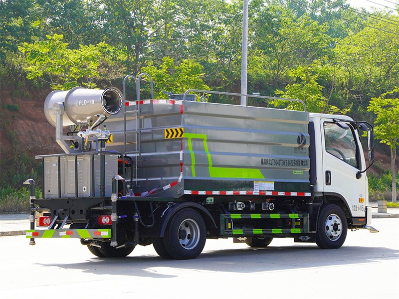 我公司產品標配前噴(鴨嘴)、后沖、后灑、側噴、后置式工作平臺,平臺上配置綠化水炮(可 360°旋轉,既可以調成柱狀,也可以調成霧狀,更可以調成直沖狀、大雨、中雨、小雨、毛毛雨),配備優質大功率專用灑水泵(可自吸自排,可從河里或池塘抽水到罐體),取力器,雜物過濾網,消防接口,自流球閥系統、取力器、球閥、濾網均為國家標準產品,主管道加粗,法蘭墊、法蘭盤加厚,大通徑球閥。整體具備性能優良安全可靠、效率高、流量大、維修方便等特點