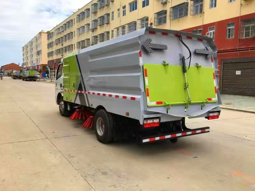 1、東風(fēng)多利卡掃路車采用吸掃混合的方式收集垃圾,濕式除塵,電液傾翻卸料的作業(yè)方式對路面進(jìn)行清掃作業(yè)。