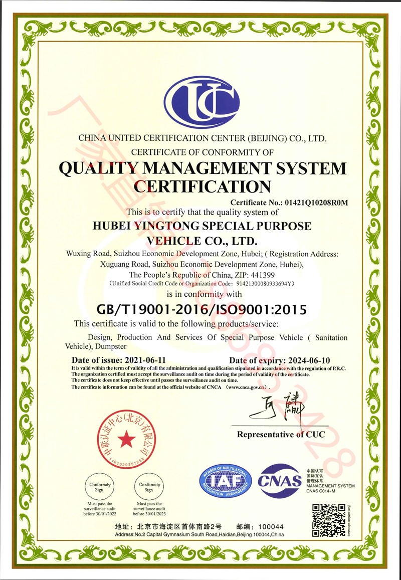 湖北盈通清掃車廠家公司資質(zhì)