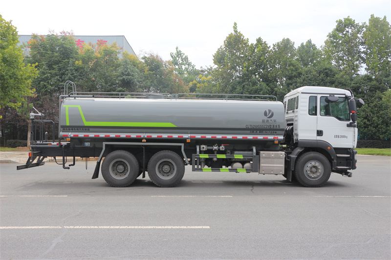 重汽18方灑水車上裝配置: 1、罐體約為 18.3 方, 2、邊燈帶電,罐體尾部上方標配 2 個紅色示寬燈, 3、標配前噴為鴨嘴直沖,標配后沖,用戶可根據自己的需求,來調 整對沖位置。 4、沖孔平臺(承載能力加強),炮筒后蓋為定制型螺栓卡扣, 5、前噴、后沖、后灑、側噴,綠化高炮開關球閥均采用 50 大通經 不銹鋼球閥, 6、新式軸承式水炮,更加耐用, 7、60-90 型水泵, 8、防腐法蘭墊片, 9、鋁制后灑,不易炸開 10、罐體自動焊(美國林肯焊機及電源),拼板自動焊接,封頭環 縫焊接,無氣孔,焊縫美觀。 11、側護網、后保險杠、均為螺栓連接,方便拆卸,維修方便。 12、塑料擋泥板,替代鐵擋泥板,更加輕便,用螺栓連接,方便拆 卸。 13、前部、后部主管連接處為 6 孔圓法蘭,不易沖墊