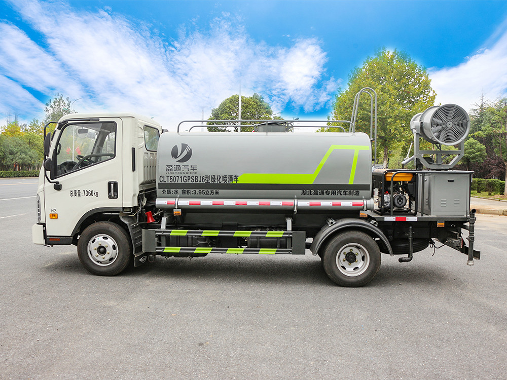 福田H2藍(lán)牌5方抑塵車產(chǎn)品介紹產(chǎn)品配置 1.底盤配置: 福田 H2 駕駛室,發(fā)動(dòng)機(jī)全柴 130 馬力,法士特 5 檔箱,7.00R16 鋼絲胎,3360 軸距,中控鎖,電動(dòng)玻璃,T-BOX(全國(guó)通用),5T 后 橋,斷氣剎,ABS2.上裝配置: 1、罐體約為 5 方,可加裝 30 型霧炮 2、邊燈帶電,罐體尾部上方標(biāo)配 2 個(gè)紅色示寬燈, 3、標(biāo)配前噴為鴨嘴直沖,標(biāo)配后沖,用戶可根據(jù)自己的需求,來(lái)調(diào) 整對(duì)沖位置。 4、花紋防滑平臺(tái),炮筒后蓋為定制型螺栓卡扣, 5、前噴、后沖、后灑、側(cè)噴,綠化高炮開關(guān)球閥均采用 50 大通經(jīng) 不銹鋼球閥, 6、新式軸承式水炮,更加耐用, 7、40-50 型水泵, 8、防腐法蘭墊片, 9、鋁制后灑,不易炸開 10、罐體自動(dòng)焊(美國(guó)林肯焊機(jī)及電源),拼板自動(dòng)焊接,封頭環(huán) 縫焊接,無(wú)氣孔,焊縫美觀。 11、側(cè)護(hù)網(wǎng)、后保險(xiǎn)杠、均為螺栓連接,方便拆卸,維修方便。 12、塑料擋泥板,替代鐵擋泥板,更加輕便,用螺栓連接,方便拆 卸。 13、前部、后部主管連接處為 6 孔圓法蘭,不易沖墊